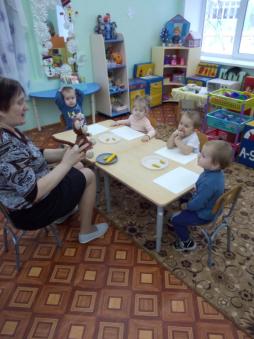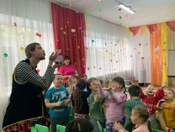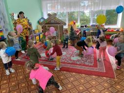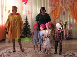 В музыкальном зале маленькие детки с Осенью играли, пели и плясали.